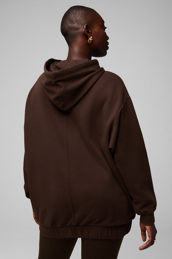 An off-day must have. This seriously soft hoodie is crafted in our warm Cozy Fleece fabric, made with recycled materials. It's designed with an oversized silhouette with luxe trims and exclusive graphics.